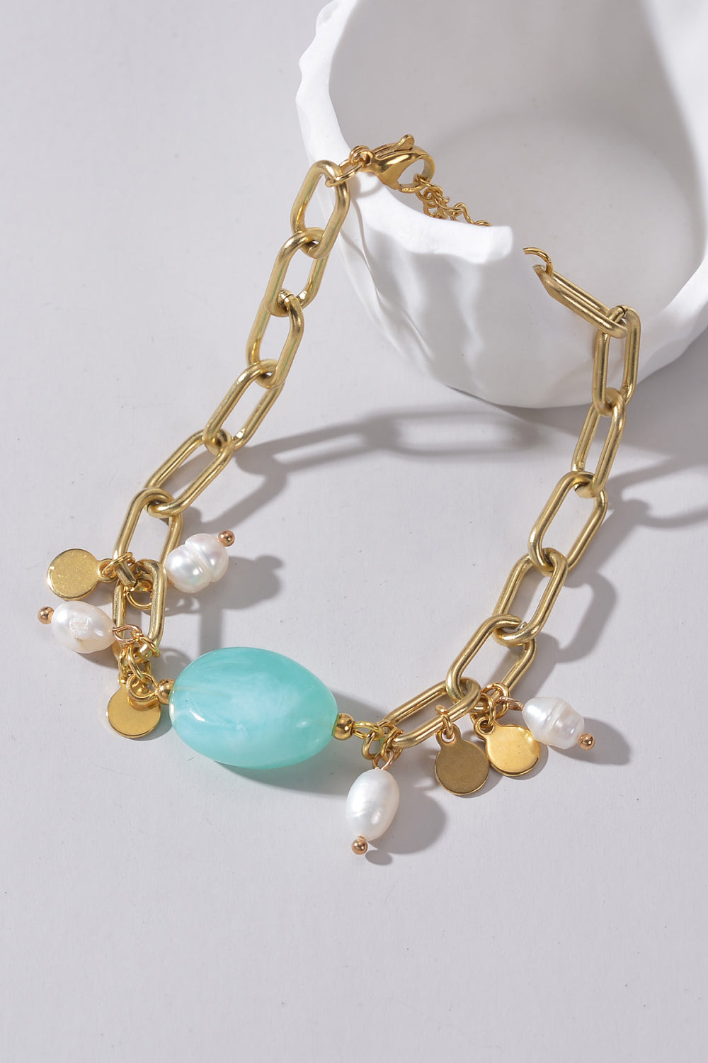 - Material: Stainless steel, jade, bead, freshwater pearls